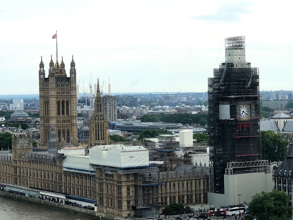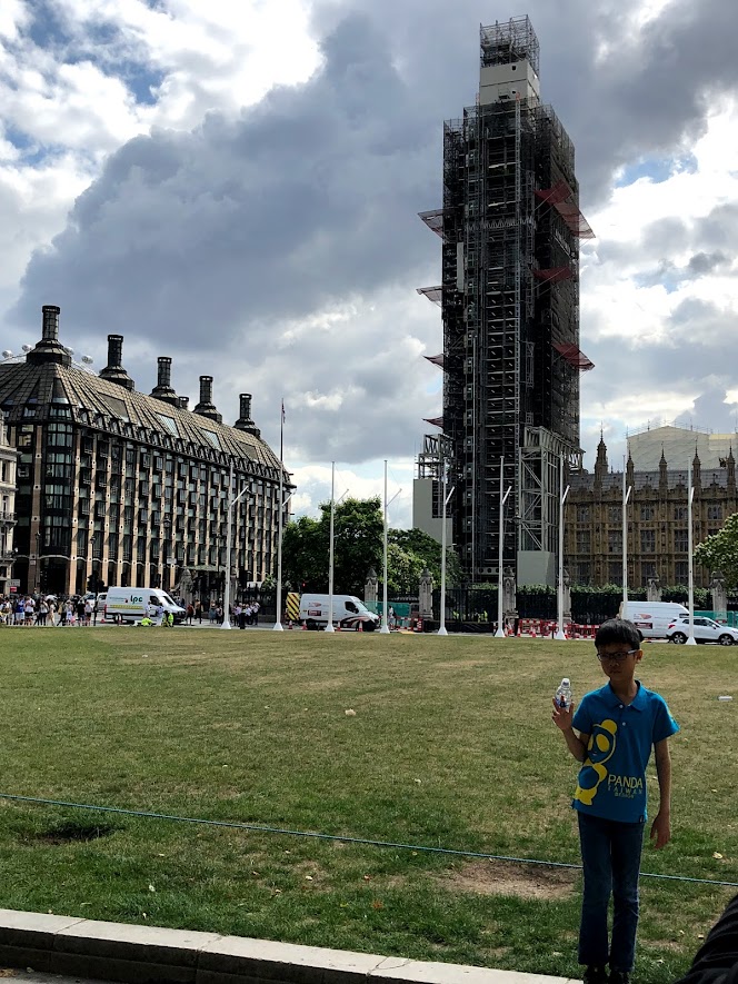 這次旅遊造訪的大笨鐘不是平常看到的大笨鐘,而是期間限量版。157歲的大笨鐘正好在洗澡加維修,預計要沉默四年,這次看到的是包著"浴巾"入浴中的大笨鐘。