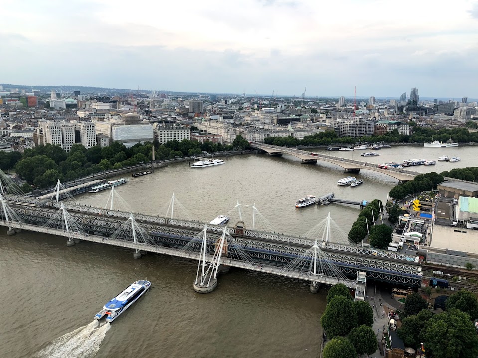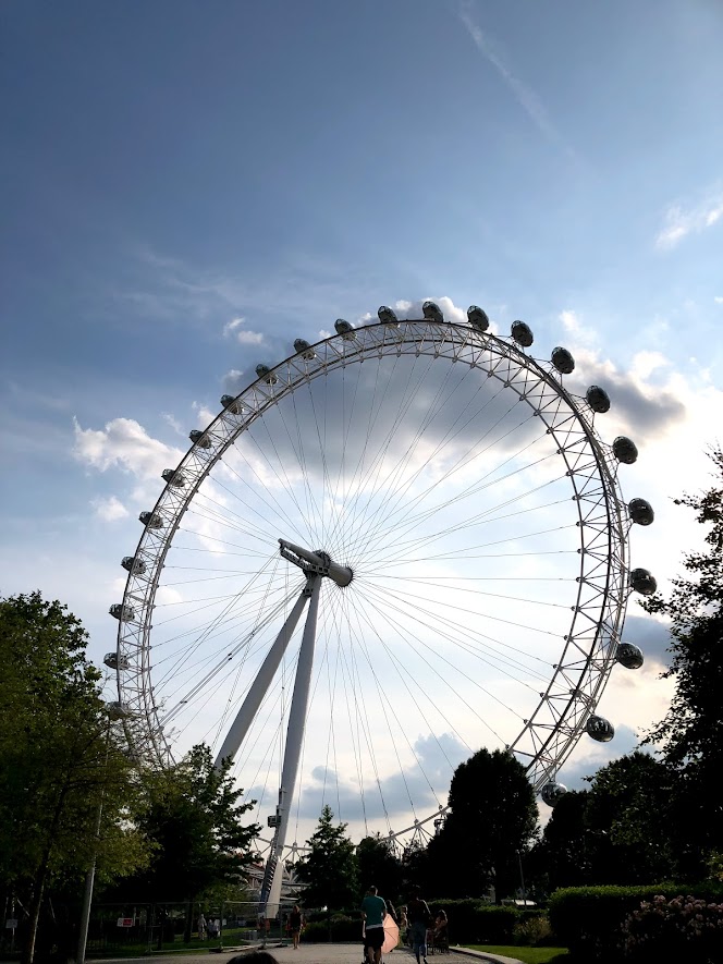 倫敦眼位於泰晤士河南畔,是世界首座景觀摩天輪,總高度約443英呎,面向國會大樓、大笨鐘等著名景點。倫敦眼共有32個附有空調的坐艙,搭乘一圈約30鐘,璀璨的夜景尤其著名,無論何時造訪都有不同的美景。